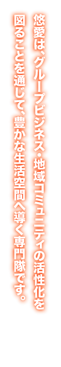 悠愛は、ビジネス・地域コミュニティの活性化を図ることを通じて、豊かな生活空間へ導く専門隊です。